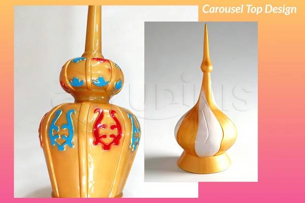 Our factory provides you with multiple custom choices, including the theme color, horse modelings, top design, decorative cornice, central column, and other decorations. If you want to buy a tailored vintage-style carousel ride, contact Dinis and get your custom solution.